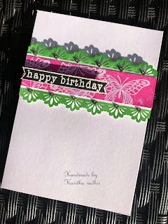 Made a one layer card first time. Its a simple card but i always had fear of stamping on the cardstock but finally happy with the outcome that too with first attempt.  Stamped the swirls and butterfly with versamark ink and clear embossed the image. Felt this sentiment will be appropriate as the swirls had hearts. will take a pic in the sun tomorrow so that  the shine due to embossing on the card is visible.