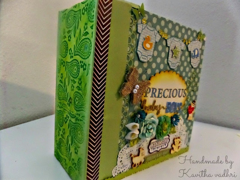 Big thanks to vithya (craftwithme.blogspot.com) for inspiring me to start an album for the baby and also smitha  for clearing my doubts. I could not resist putting flowers on the cover even though it is boy's.
