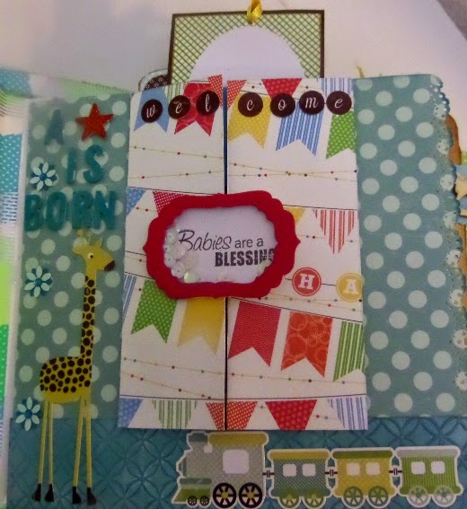 • The pattern paper is the left over paper from last year.  I have to diecut the photo to slide into. The stickers are the from Bundle of joy of echo park.